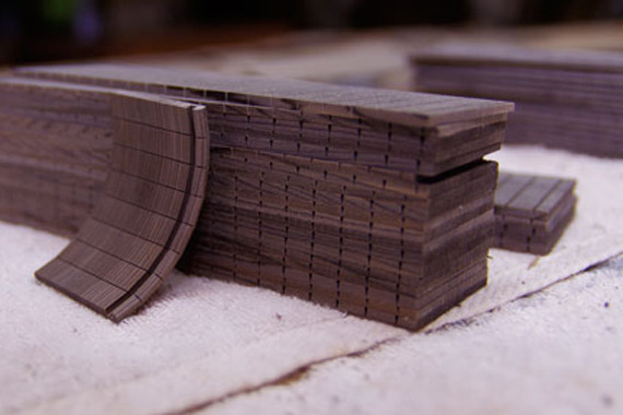 Tatsuo adapts the Edo-era techniques of ‘sashimono‘ and ‘hikimage‘ to fit wooden pieces together without nails and by bending them into shape in his own unique way – using a saw, scores are made in the wood so it can be folded, changing the form of wood, to create a circular shape.